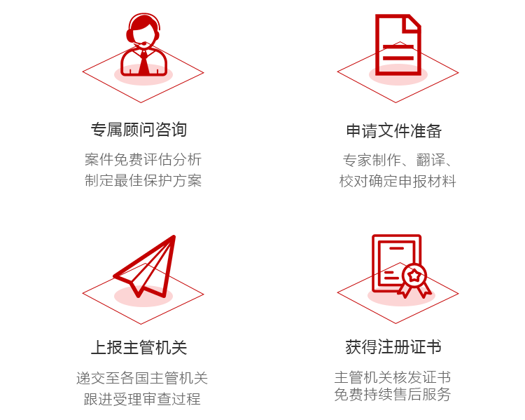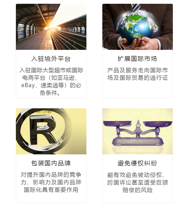 服务介绍:为国内人申请人获得国际商标专用权,提供超过全球218个国家或地区一站式商标注册的服务。
